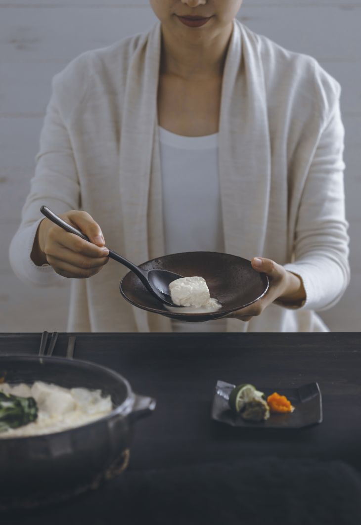 ![]() STATEMENT 有明海に面した肥沃な大地が広がる佐賀平野。 日本でも有数の大豆生産地で、お豆腐づくりに適した大豆が 豊富につくられています。佐嘉平川屋では、この土地で育った 大豆を使い、その日その時の状態に合わせて職人が手を加え、 大豆の力を最大限に引き出しながら、日々お豆腐を作っています。 佐嘉平川屋のお豆腐作りを支える想い。 それは、佐賀県各地で地元の方々に親しまれている多彩な お豆腐文化を、多くの皆様に楽しんで頂くことです。 私たちは、これまでに育まれてきたお豆腐文化を継承し、 より多くの皆様へ大切にお届けしていきます。 そして、新たにこの地に根付く未来のお豆腐文化の 創造にも取り組んで参ります。 ![]() 全国有数の大豆の産地・佐賀。 良質な大豆が豊富に採れる恵まれた環境に支えられてお豆腐づくりに勤しんでいます。 ![]() 佐賀の大豆とお豆腐のお話し 「温泉湯豆腐」「ざる豆腐」「ごどうふ」・・・・・・・・佐賀では地域ごとに見た目も味わいも多彩なお豆腐が親しまれています。このお豆腐文化を支えているのが、お豆腐づくりに適した質の高い「フクユタカ」が豊富に採れる佐賀の風土です。 七月初旬から晩秋にかけて栽培される大豆。盛夏には、当社工場周辺の大豆畑が、鮮やかな緑の絨毯で彩られます。たんぱく質を多く含みつつも、すっきりと雑味のない甘さがあり、全国のお豆腐屋さんがわざわざ取り寄せるほど人気の大豆です。 地元にいる私たちは、大豆の生育状況を見て、生産農家の方々と意見を交わしながらお豆腐をつくることができます。また、大切に育てられた大豆を佐賀のおいしいお豆腐にしてもらえると嬉しい、と生産者の方々に言っていただけます。そんな大豆を育てる皆様の想いと共に、全国のお客様のもとへお豆腐をお届けしています。 ![]() 変わらないお豆腐づくり 創業は昭和二十五(1950)年。初代は、毎日朝早くからお豆腐をつくっては、自転車に乗って隣町まで舗装されていない道を通い、お客様に届けていました。その頃からすれば設備も製造方法も大きく変わりましたが、初代が大切にしていたお豆腐づくりに対する姿勢は今も変わりません。 お豆腐の材料は大豆、水、にがりの三つのみ。材料に加えて作り方もシンプルであるがゆえに、職人による微細な調整で出来上がりは大きく変わってしまいます。大豆の浸漬時間や水の温度、大豆の擦り方、炊き方・・・・・・・・全ての工程で、その日の気温や大豆の状況に合わせた最適な状態に整えて、ようやく美味しいお豆腐ができあがります。 「ひとつひとつの工程に細心の注意をはらい、自分たちが食べたいと思えるお豆腐をつくる」、それが、創業以来続く、私たちのお豆腐づくりです。 ![]() 佐嘉平川屋の「温泉湯豆腐」 江戸時代、嬉野温泉は旅人に親しまれる宿場町でした。温泉水を使用した湯豆腐は当時から親しまれており、今でも旅館の朝食や町の飲食店の定番メニューです。また、温泉街の家庭には温泉が配管されており、湯豆腐は溶け出すのが当たり前。温泉湯豆腐は嬉野の伝統の味として、地域の暮らしに根付いています。 特殊な性質を持つ嬉野の温泉水で煮るとお豆腐が溶けだし、ふわふわと淡雪のような食感と適度な食べごたえ、大豆の甘味を感じる優しい味わいになる温泉湯豆腐。佐賀ならではのおいしさを、全国のご家庭でも楽しんでいただくために、嬉野温泉と同質の「温泉とうふ用調理水」を当社の二代目が開発しました。 さらに、地元では朝食として食べられていたものを、温泉湯豆腐、白濁したスープを出汁にした鍋、〆の雑炊と一度で三度おいしい鍋料理として再定義。一からつくった専用タレと合わせると、より豊かな味わいをお楽しみいただけます。 ![]() 温もりの空間 佐嘉平川屋嬉野店 さらに佐賀のお豆腐文化を発信し、直接お客様と繋がっていきたいという思いから、2010年にお食事スペースを併設したアンテナショップ「佐嘉平川屋嬉野店」をオープンいたしました。 嬉野店では、お買い物をしていただくだけでなく、くつろぎながらお食事をしていただけるよう古民家の木材を最大限に活用した、温もりと落ち着きのある和の空間に仕上げました。前職で建築業にも携わっていた三代目こだわりの空間ですので、ゆっくりお過ごしください。 嬉野という場所の特性上、観光に訪れる皆様には、温泉湯豆腐など地域のお豆腐文化を楽しむ場所として、また、地域の皆様には、日々のお豆腐や贈り物を購入していただく場所として広くご利用頂いております。 |